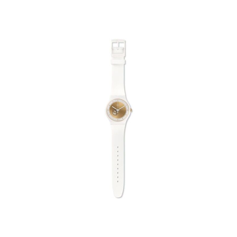 desde el centro del reloj, pero de una manera suave, se notan en el dial los detalles de oro que crean un sutil pero notable contraste.